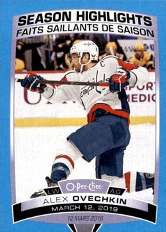 Alexander Ovechkin 2019 O-Pee-Chee #599 Blue Border RAW Price Guide