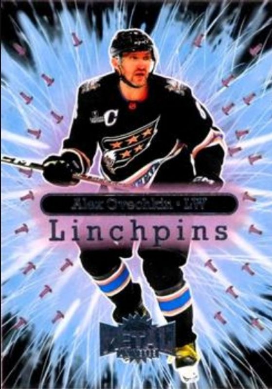 The Alexander Ovechkin 2022 Metal Universe #8-OF-20-LP Linchpins card is 1 of 33 Alexander Ovechkin's card variations in the 2022 Metal Universe set being tracked by Sports Card Investor, including Base, Spectrum FX Blue, Auto Silver FX /349, Spectrum FX Purple /199, and Precious Metal Gems Green /100.