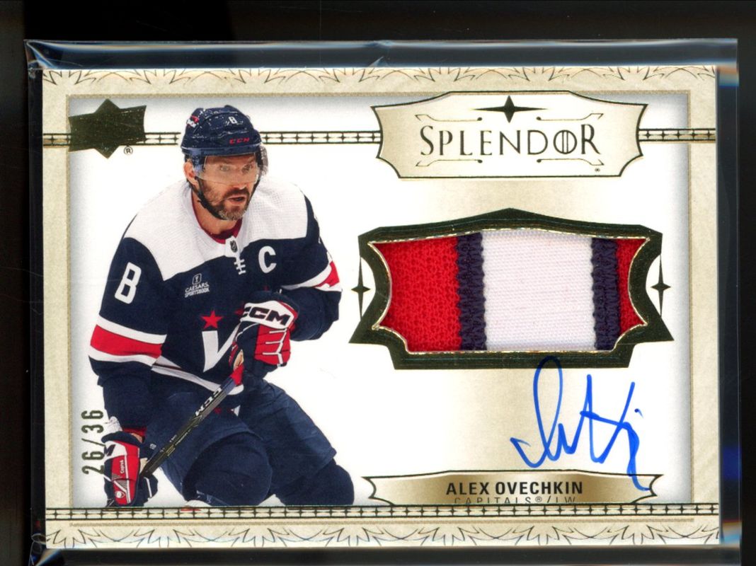 The Alexander Ovechkin 2023 Upper Deck The Cup #SP-AO 2022 Splendor Update /36 card is 1 of 40 Alexander Ovechkin's card variations in the 2023 Upper Deck The Cup set being tracked by Sports Card Investor, including 2022 The Cup Update Signatures Renditions, Rendition Relics, The Show Black - Auto, The Show - Black /99, and 2022 The Cup Update Championship Reflections /35.