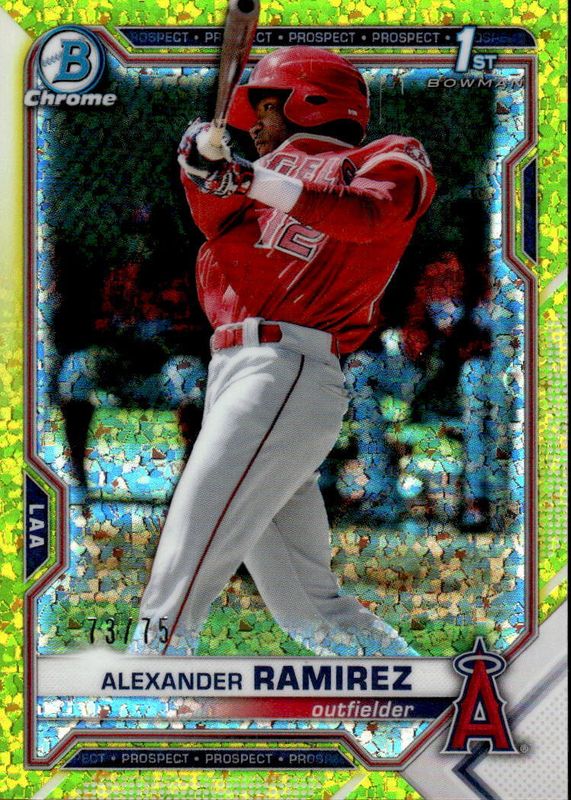 Alexander Ramirez 2021 Bowman #BCP-145 Chrome Prospects - Yellow Mini-Diamond Refractor /75 (1st) RAW Price Guide