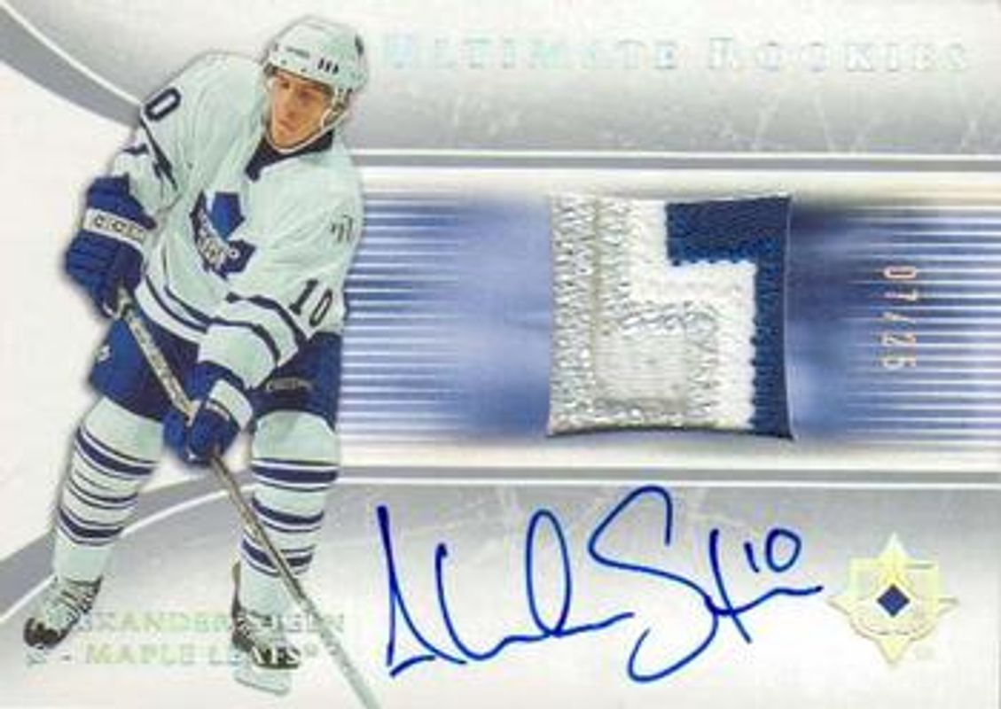 The Alexander Steen 2005 Upper Deck Ultimate Collection #96 Autographed Patches /25 Rookie card is 1 of 15 Alexander Steen's card variations in the 2005 Upper Deck Ultimate Collection set being tracked by Sports Card Investor, including Base /599, Ultimate Signatures, Jerseys /250, Marquee Attractions /250, and Ultimate Debut Threads Jerseys /250.