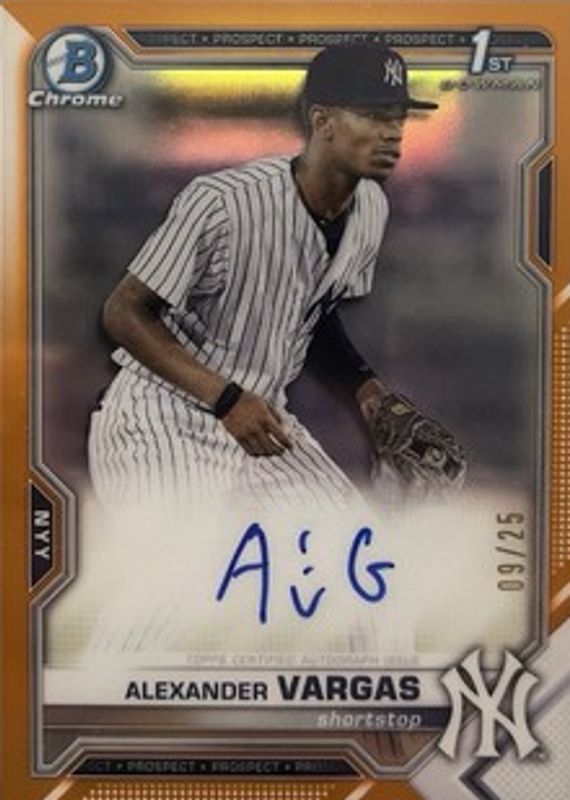 Alexander Vargas 2021 Bowman #CPA-AV Chrome Prospect Auto - Orange Refractor /25 (1st) Rookie RAW Price Guide