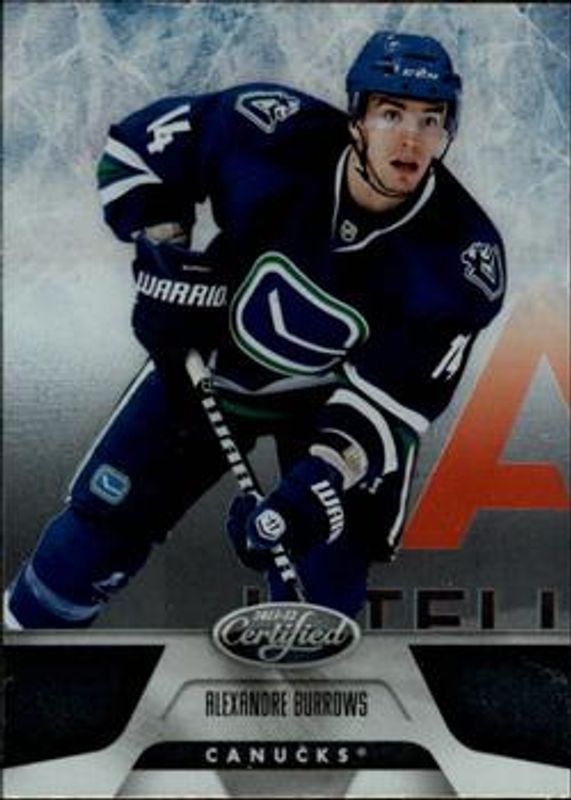 The Alexandre Burrows 2011 Certified #64 Base /499 card is 1 of 25 Alexandre Burrows' card variations in the 2011 Certified set being tracked by Sports Card Investor, including Totally Silver, Mirror Red /199, Mirror Blue /99, Mirror Gold /25, and Mirror Gold Materials Prime /25.