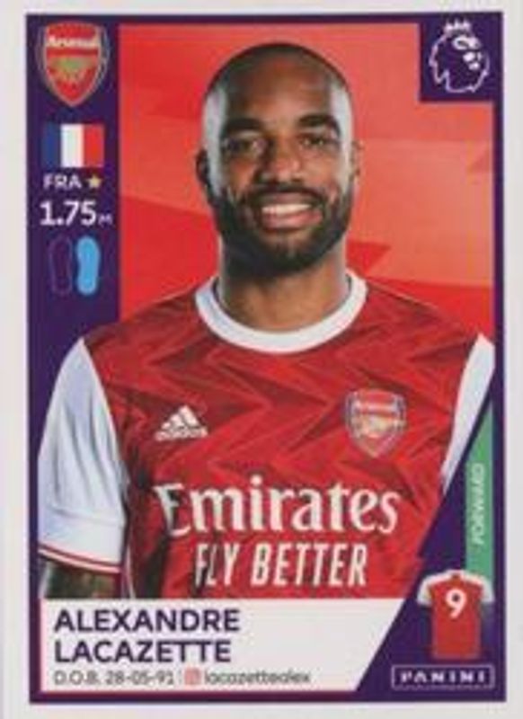 Alexandre Lacazette's Soccer cards are available in at least 29 sets. Alexandre Lacazette's biggest 7-day price movers are 2020 Panini Premier League Stickers #40 Base, 2022 Panini Premier League Stickers #43 Base, and 2020 Panini Football #70 Base.