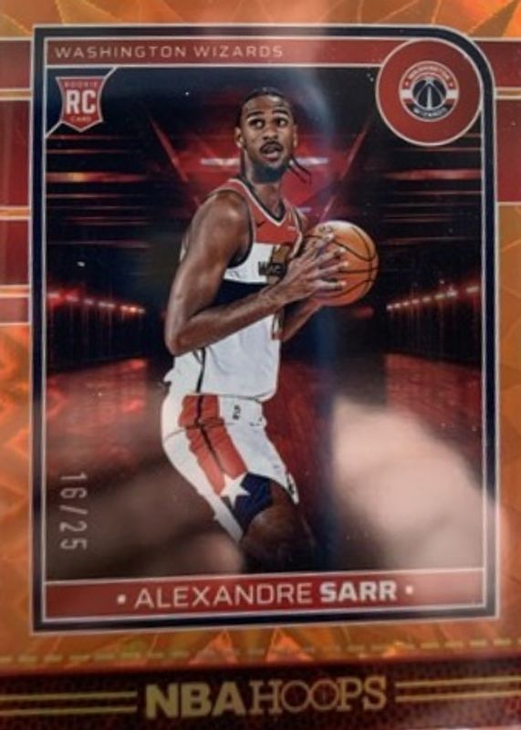 The Alexandre Sarr 2024 Hoops #232 Orange Explosion /25 Rookie card in Raw condition has not changed in price in the last 30 days and was last sold for $44.00 .