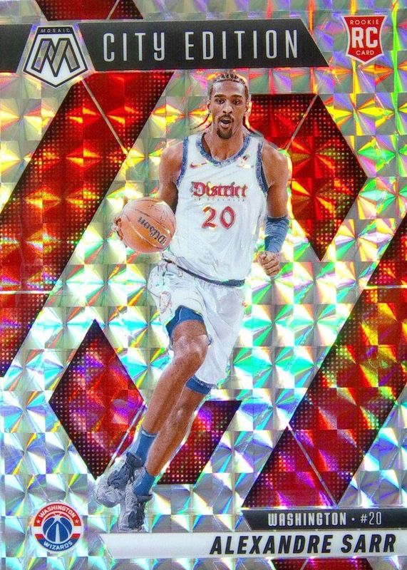 The Alexandre Sarr 2024 Mosaic #278 City Edition - Silver Rookie card in Raw condition has moved down -$1.25 (-55.6%) in the last 30 days and was last sold for $1.00 .