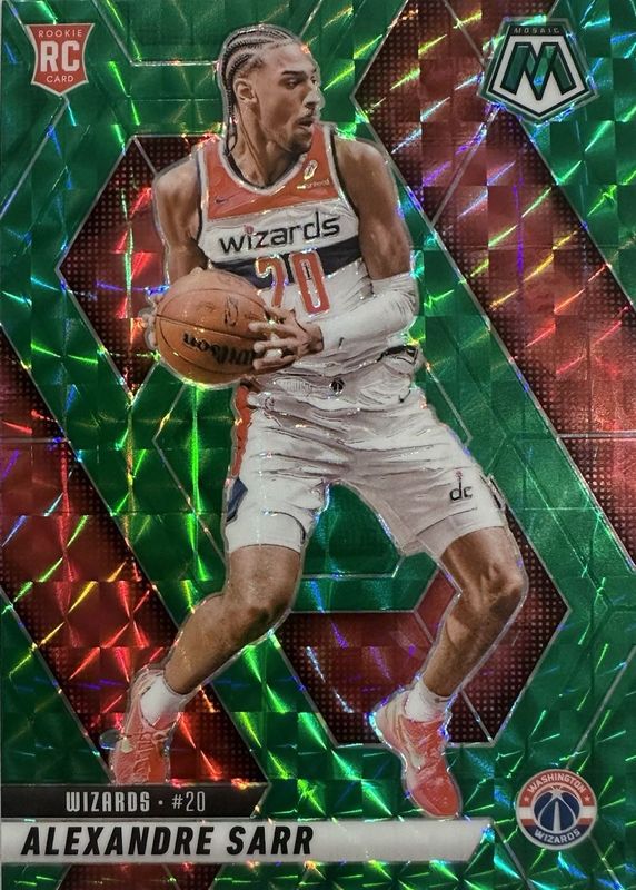 The Alexandre Sarr 2024 Mosaic #216 Green Rookie card in Raw condition has moved up $0.05 (+4.2%) in the last 30 days and was last sold for $1.25 .