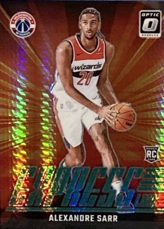 The Alexandre Sarr 2024 Optic #11 Express Lane - Hyper Green /249 Rookie card in Raw condition has moved down -$0.12 (-3.4%) in the last 30 days and was last sold for $3.39 .