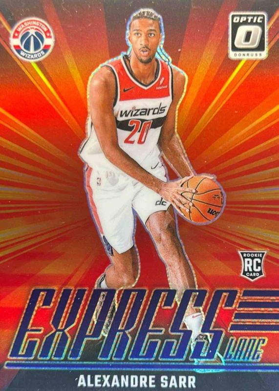 The Alexandre Sarr 2024 Optic #11 Express Lane - Purple Rookie card in Raw condition has moved up $1.01 (+102%) in the last 30 days and was last sold for $2.00 .