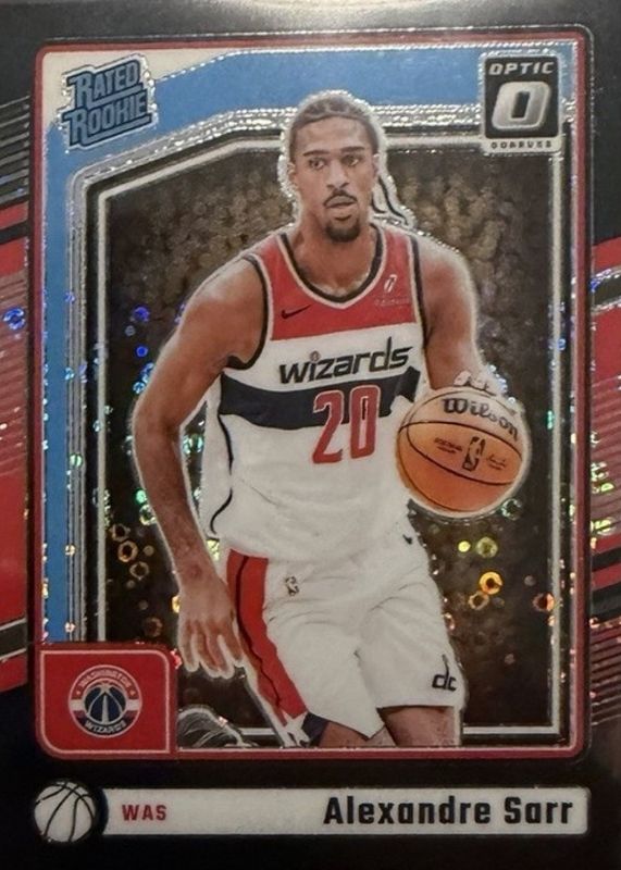 This card is 1 of 204 Alexandre Sarr's card variations in the 2024 Optic set being tracked by Sports Card Investor, including Base, Blue Velocity, Checkerboard, Choice, and Fast Break.