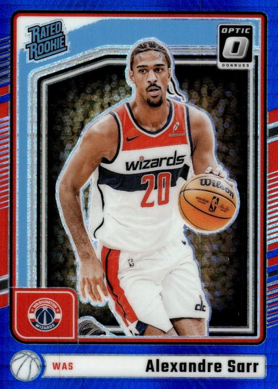 The Alexandre Sarr 2024 Optic #276 Hyper Blue /175 Rookie card in Raw condition has moved up $12.75 (+567%) in the last 30 days and was last sold for $15.00 .