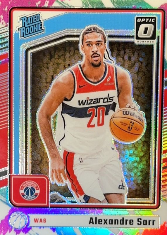 This card is 1 of 203 Alexandre Sarr's card variations in the 2024 Optic set being tracked by Sports Card Investor, including Base, Blue Velocity, Checkerboard, Choice, and Fast Break.