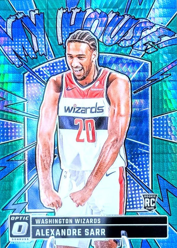 The Alexandre Sarr 2024 Optic #9 My House - Hyper Green /249 Rookie card in Raw condition has not changed in price in the last 30 days and was last sold for $9.50 .