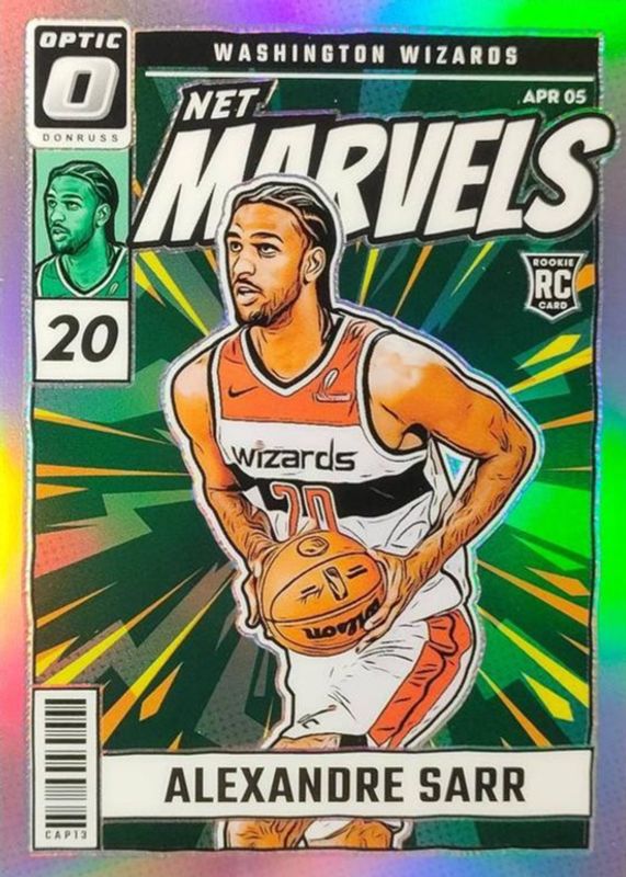 The Alexandre Sarr 2024 Optic #7 Net Marvels - Holo Rookie card in Raw condition has moved up $4.51 (+456%) in the last 30 days and was last sold for $5.50 .