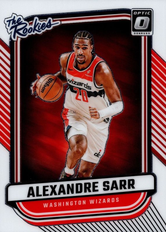 The Alexandre Sarr 2024 Optic #2 The Rookies card in Raw condition has moved up $0.01 (+1.0%) in the last 30 days and was last sold for $1.00 .