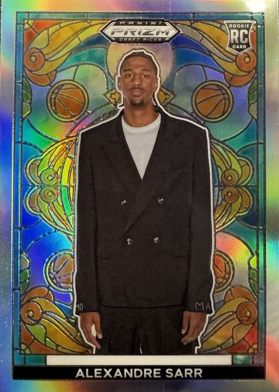 The Alexandre Sarr 2024 Prizm Draft Picks #10 Stained Glass /(SSP) Rookie card in Raw condition has not changed in price in the last 30 days and was last sold for $44.99 .