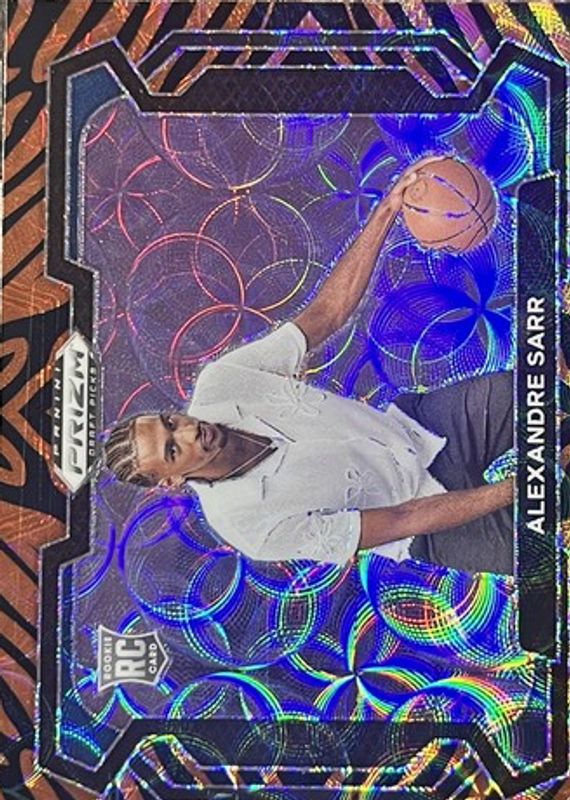 The Alexandre Sarr 2024 Prizm Draft Picks #52 Tiger Stripe /(SSP) Rookie card in Raw condition has not changed in price in the last 30 days and was last sold for $28.00 .