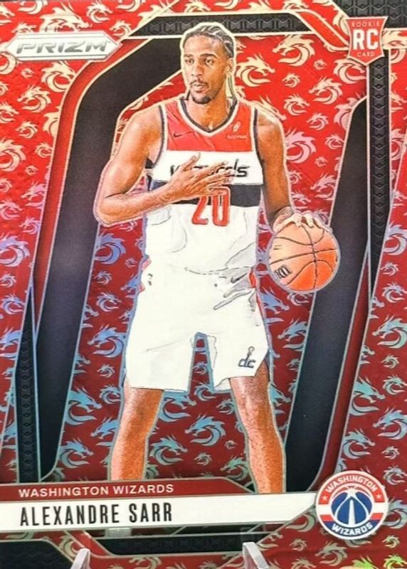 The Alexandre Sarr 2024 Prizm #264 Dragon Year /88 Rookie card in Raw condition has moved up $5.00 (+7.1%) in the last 30 days and was last sold for $75.00 .