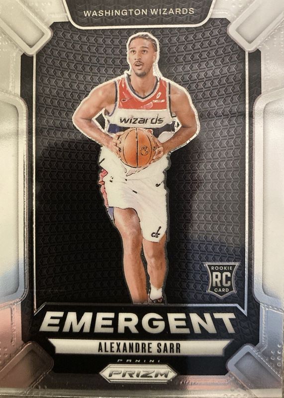 The Alexandre Sarr 2024 Prizm #14 Emergent Rookie card in Raw condition has moved up $0.23 (+23.2%) in the last 30 days and was last sold for $1.22 .