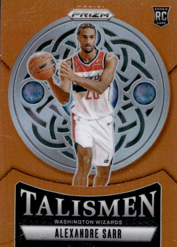 The Alexandre Sarr 2024 Prizm #17 Talismen - Orange /49 Rookie card in Raw condition has not changed in price in the last 30 days and was last sold for $18.06 .