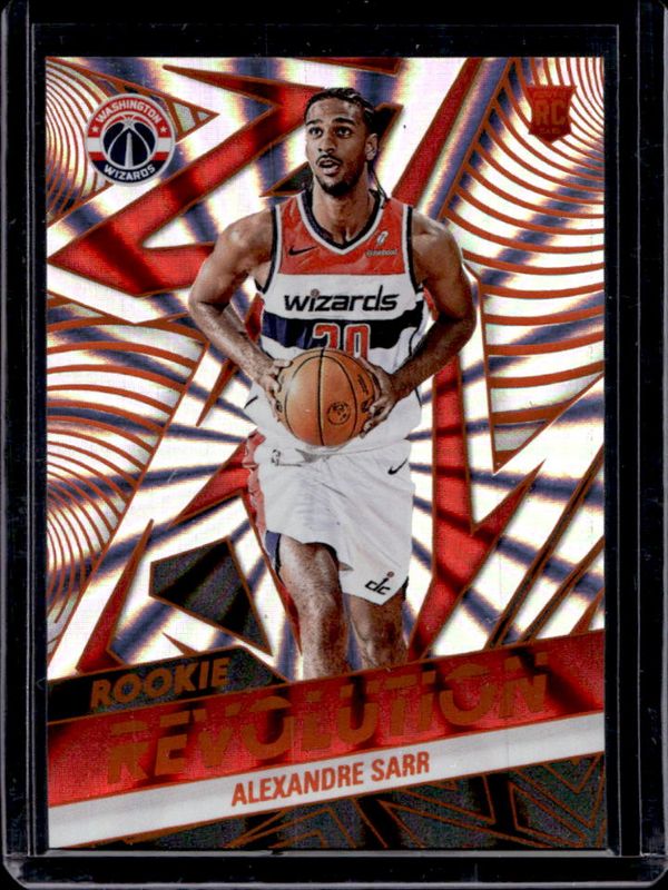 The Alexandre Sarr 2024 Revolution #16 Rookie Revolution - Sunburst /75 card is 1 of 102 Alexandre Sarr's card variations in the 2024 Revolution set being tracked by Sports Card Investor, including Base, Astro, Blue Storm, Chinese New Year, and Fractal.
