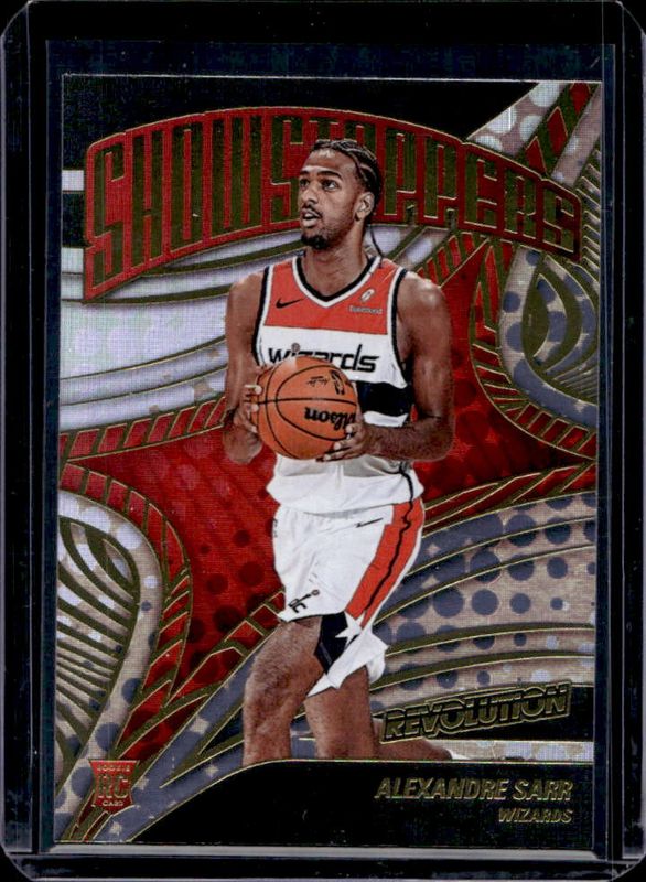 The Alexandre Sarr 2024 Revolution #14 Showstoppers Rookie card is 1 of 102 Alexandre Sarr's card variations in the 2024 Revolution set being tracked by Sports Card Investor, including Base, Astro, Blue Storm, Chinese New Year, and Fractal.