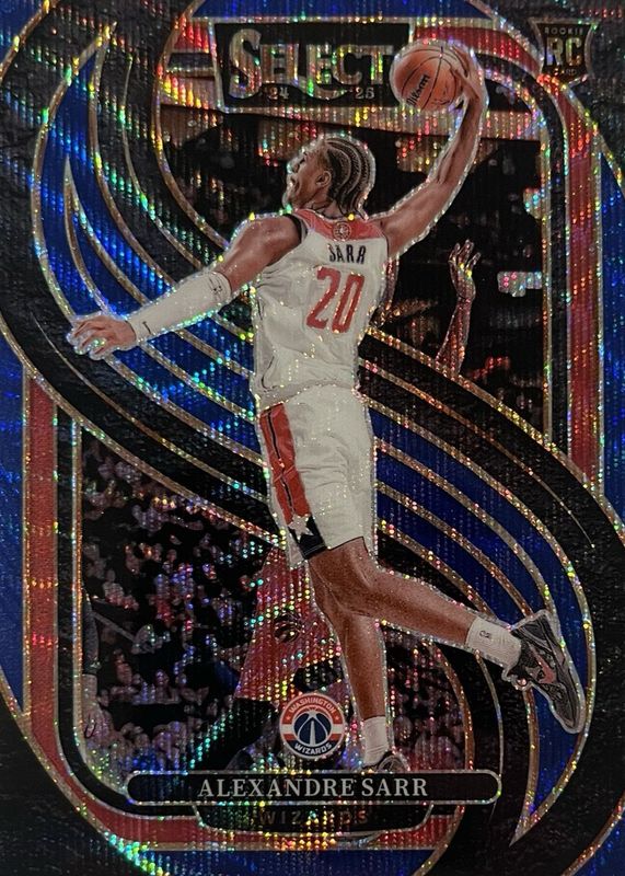 The Alexandre Sarr 2024 Select #185 Premier Level Blue Wave /75 Rookie card in Raw condition has moved up $1.00 (+9.5%) in the last 30 days and was last sold for $11.50 .