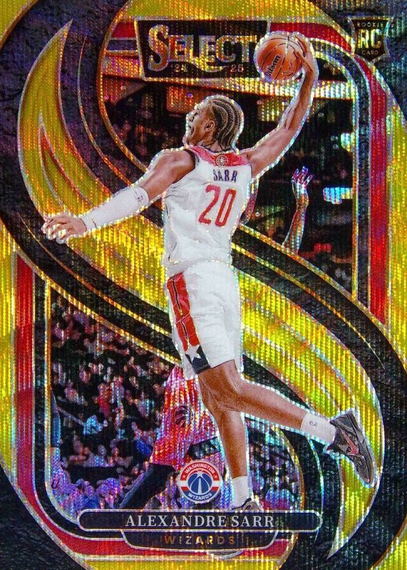 The Alexandre Sarr 2024 Select #185 Premier Level Gold Wave /10 Rookie card in Raw condition has not changed in price in the last 30 days and was last sold for $149.99 .