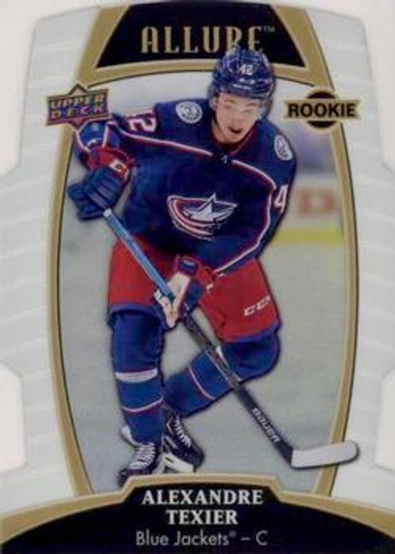 The Alexandre Texier 2019 Upper Deck Allure #71 White Rainbow Rookie card is 1 of 40 Alexandre Texier's card variations in the 2019 Upper Deck Allure set being tracked by Sports Card Investor, including #132 Base, #71 Base, #71 Pewter, #132 Pink Diamond, and #71 Red Rainbow.