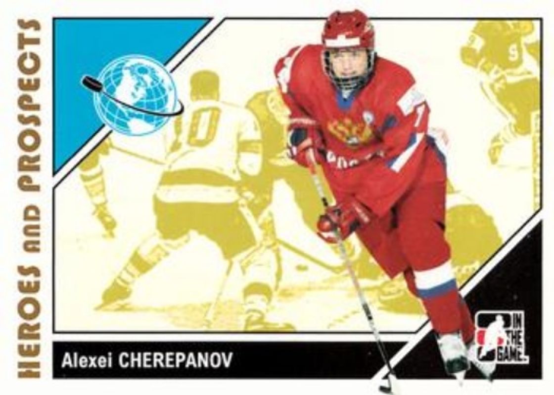 The Alexei Cherepanov 2007 In The Game Heroes & Prospects #12 Base card is 1 of 8 Alexei Cherepanov's card variations in the 2007 In The Game Heroes & Prospects set being tracked by Sports Card Investor, including Autographs, Complete Jerseys, Emblems, Jerseys, and Numbers.