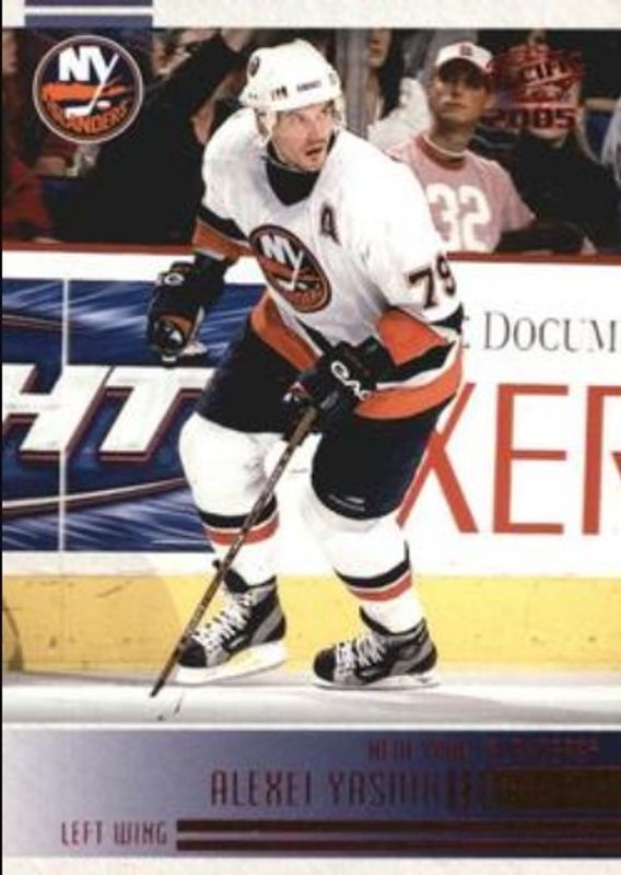 The Alexei Yashin 2004 Pacific #171 Red card is 1 of 5 Alexei Yashin's card variations in the 2004 Pacific set being tracked by Sports Card Investor, including Base, Blue /250, Jerseys /850, and Jerseys - Gold /50.