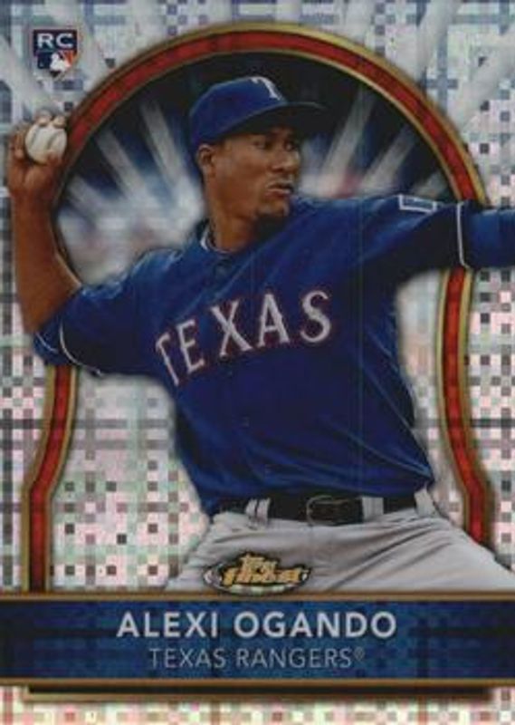 The Alexi Ogando 2011 Topps Finest #89 X-Fractor /299 Rookie card is 1 of 33 Alexi Ogando's card variations in the 2011 Topps Finest set being tracked by Sports Card Investor, including Base, Refractor /549, Green Refractor /199, Orange Refractor /99, and Gold Refractor /50.