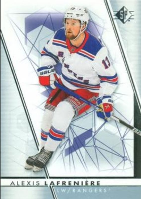 The Alexis Lafreniere 2022 SP #13 Base /399 card is 1 of 15 Alexis Lafreniere's card variations in the 2022 SP set being tracked by Sports Card Investor, including Blue, Authentic Profiles - Blue, Authentic Profiles Jersey, Authentic Profiles - Patterned Foilboard, and Authentic Profiles - Patterned Foilboard Gold.