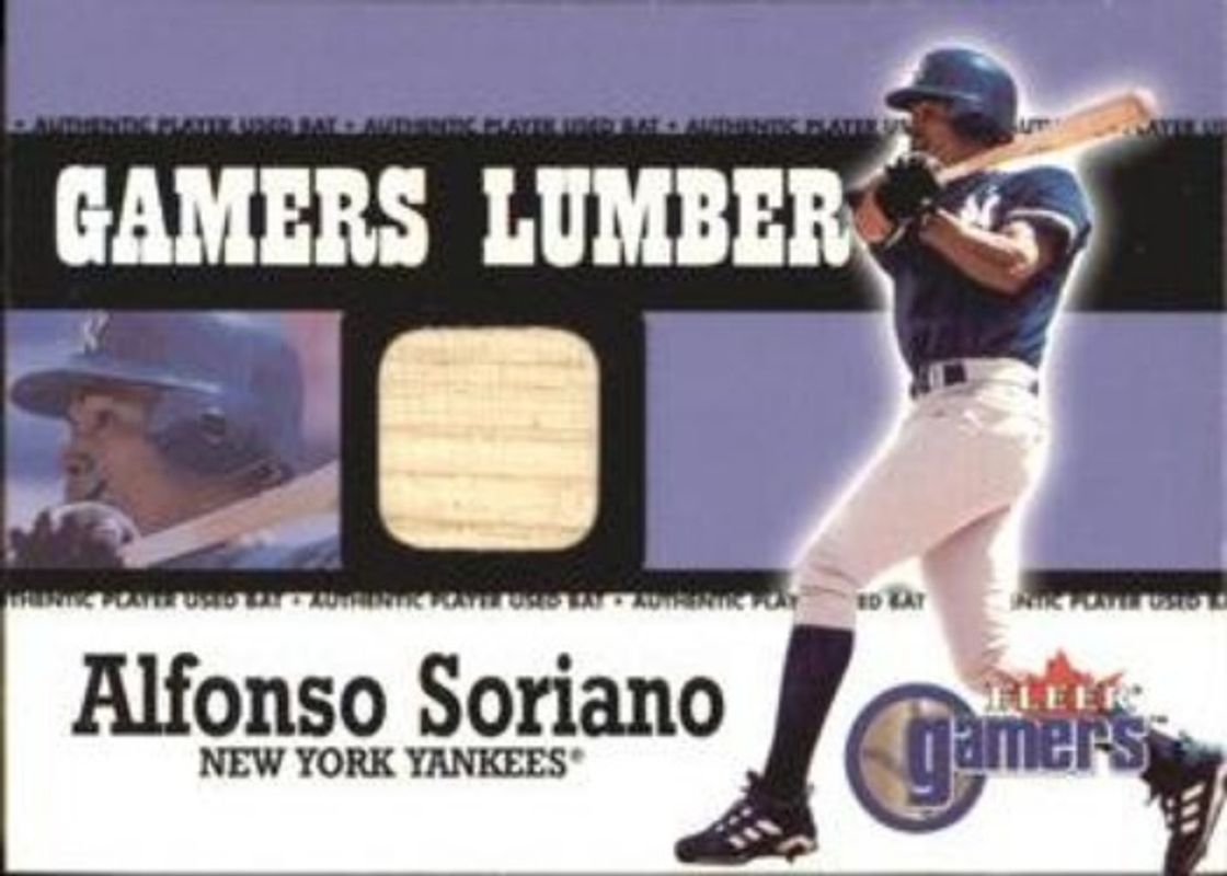The Alfonso Soriano 2000 Fleer Gamers Gamers Lumber card is 1 of 4 Alfonso Soriano's card variations in the 2000 Fleer Gamers set being tracked by Sports Card Investor, including Base, Extra, and Signed Gamers Lumber.