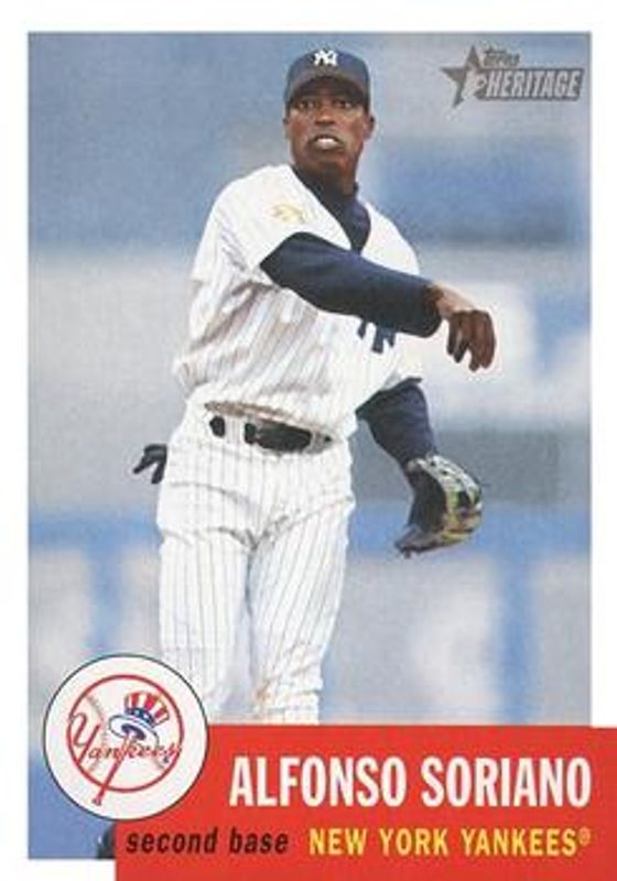 The Alfonso Soriano 2002 Topps Heritage #298 Base card is 1 of 2 Alfonso Soriano's card variations in the 2002 Topps Heritage set being tracked by Sports Card Investor, including Chrome /553.