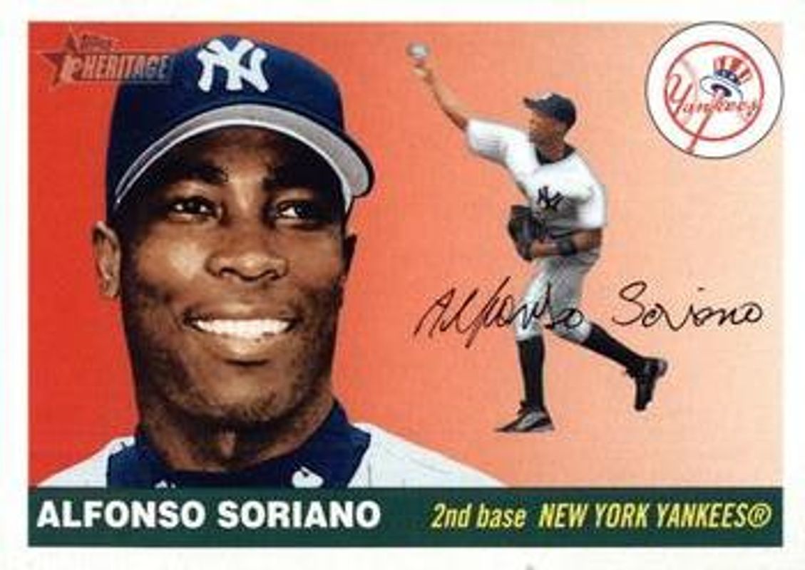 The Alfonso Soriano 2004 Topps Heritage #250a Base card is 1 of 7 Alfonso Soriano's card variations in the 2004 Topps Heritage set being tracked by Sports Card Investor, including Base, Chrome /1955, Clubhouse Collection Relics, New Age Performers, and Chrome Refractor /555.