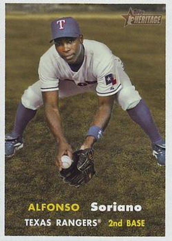 The Alfonso Soriano 2006 Topps Heritage #286 Base card is 1 of 2 Alfonso Soriano's card variations in the 2006 Topps Heritage set being tracked by Sports Card Investor, including Clubhouse Collection Relics.