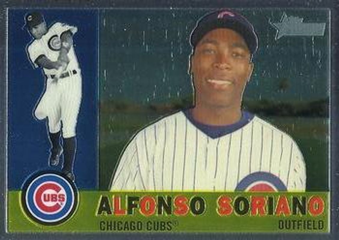 The Alfonso Soriano 2009 Topps Heritage #C46 Chrome /1960 card is 1 of 6 Alfonso Soriano's card variations in the 2009 Topps Heritage set being tracked by Sports Card Investor, including Base, Chrome Refractor /560, Chrome Refractor Black /60, Clubhouse Collection Relics, and Mayo (Target).