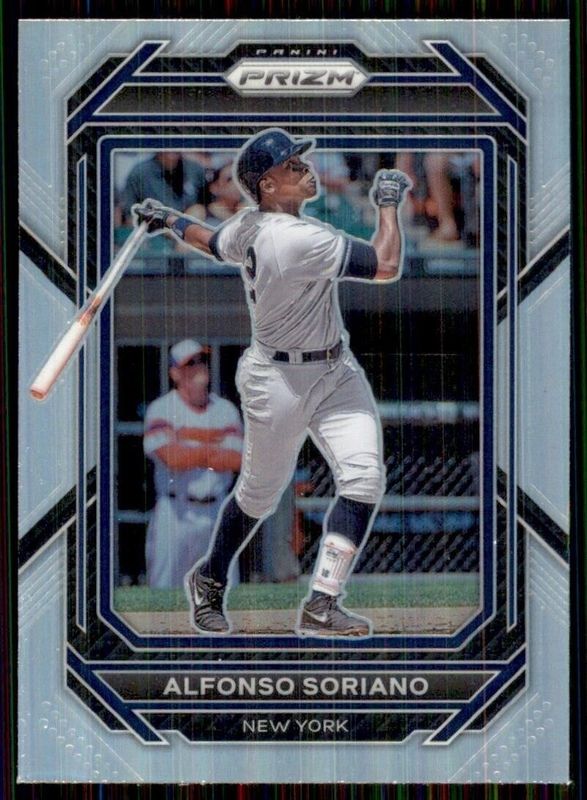 The Alfonso Soriano 2023 Prizm #239 Silver card is 1 of 26 Alfonso Soriano's card variations in the 2023 Prizm set being tracked by Sports Card Investor, including Base, Blue Ice, Giraffe, Green Ice, and Hyper.