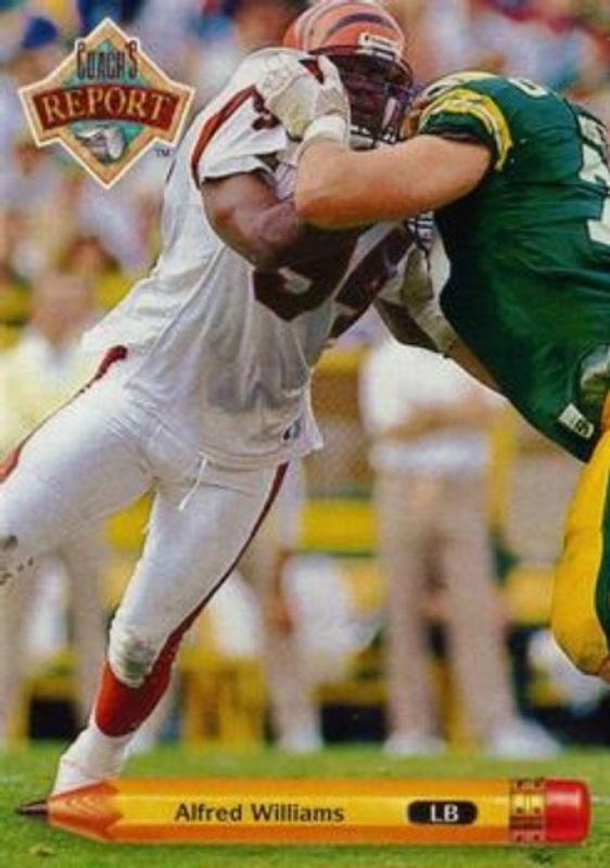 The Alfred Williams 1992 Upper Deck #CR3 Coach's Report card is 1 of 3 Alfred Williams' card variations in the 1992 Upper Deck set being tracked by Sports Card Investor, including #46 Base, and #60 Base.