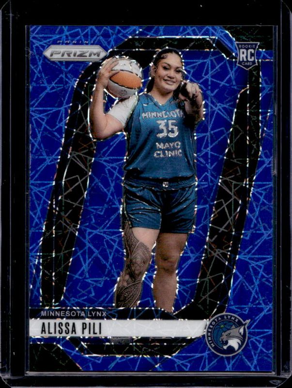 The Alissa Pili 2024 Prizm WNBA #150 Blue Velocity Rookie card is 1 of 110 Alissa Pili's card variations in the 2024 Prizm WNBA set being tracked by Sports Card Investor, including #83 Base, #150 Base, #150 Rookie Variation, #83 Blue Velocity, and #83 Checkerboard.