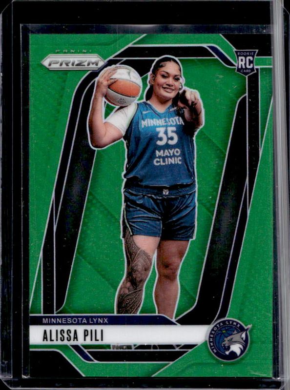 The Alissa Pili 2024 Prizm WNBA #150 Green Rookie card is 1 of 110 Alissa Pili's card variations in the 2024 Prizm WNBA set being tracked by Sports Card Investor, including #83 Base, #150 Base, #150 Rookie Variation, #150 Blue Velocity, and #83 Blue Velocity.