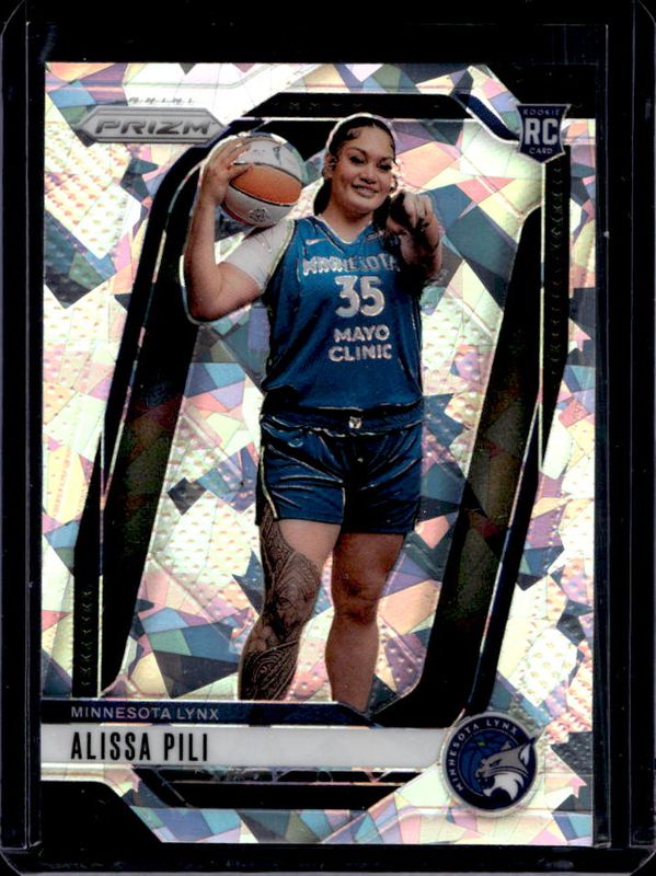 The Alissa Pili 2024 Prizm WNBA #150 Ice Rookie card is 1 of 110 Alissa Pili's card variations in the 2024 Prizm WNBA set being tracked by Sports Card Investor, including #83 Base, #150 Base, #150 Rookie Variation, #150 Blue Velocity, and #83 Blue Velocity.