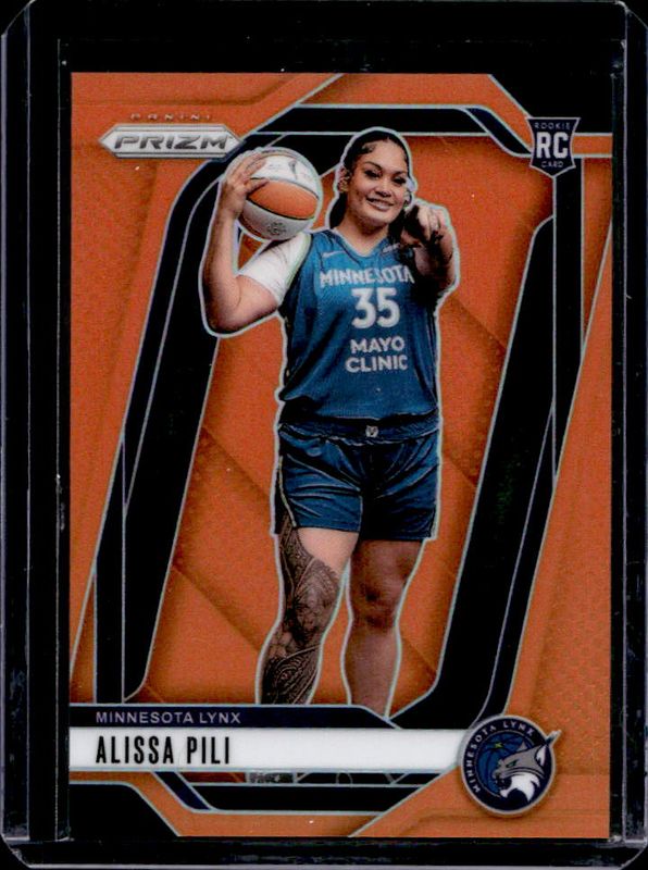 The Alissa Pili 2024 Prizm WNBA #150 Orange /99 Rookie card is 1 of 110 Alissa Pili's card variations in the 2024 Prizm WNBA set being tracked by Sports Card Investor, including #83 Base, #150 Base, #150 Rookie Variation, #150 Blue Velocity, and #83 Blue Velocity.