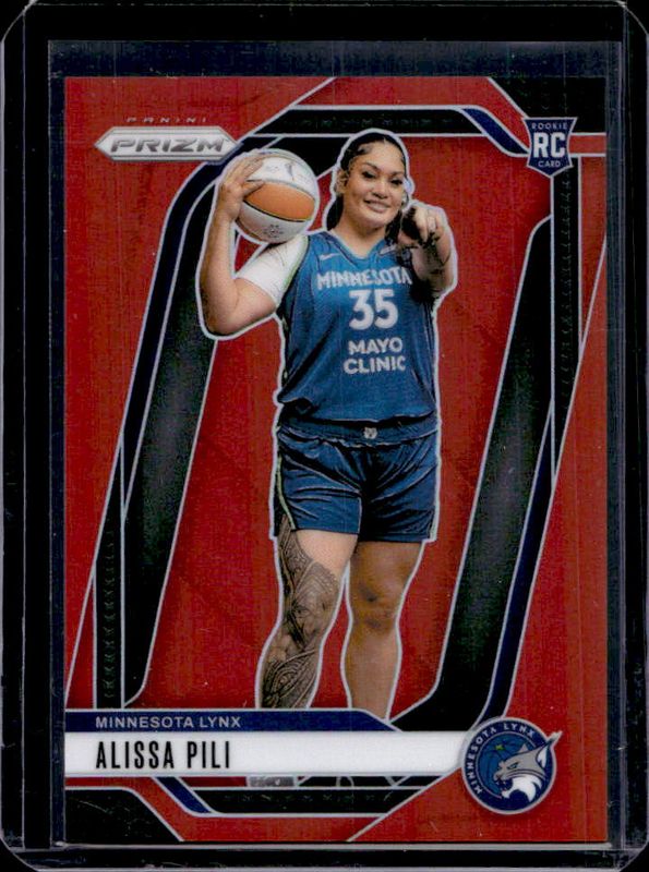 The Alissa Pili 2024 Prizm WNBA #150 Red /299 Rookie card is 1 of 110 Alissa Pili's card variations in the 2024 Prizm WNBA set being tracked by Sports Card Investor, including #83 Base, #150 Base, #150 Rookie Variation, #150 Blue Velocity, and #83 Blue Velocity.