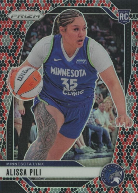 The Alissa Pili 2024 Prizm WNBA #83 Snakeskin /(SSP) Rookie card in Raw condition has not changed in price in the last 30 days and was last sold for $48.66 .