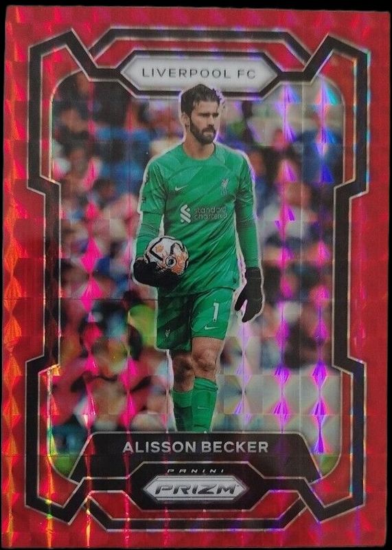 The Alisson Becker 2023 Prizm Premier League #78 Red Mosaic card is 1 of 62 Alisson Becker's card variations in the 2023 Prizm Premier League set being tracked by Sports Card Investor, including Base, Blue Mosaic, Breakaway, Breakaway Orange, and Choice.