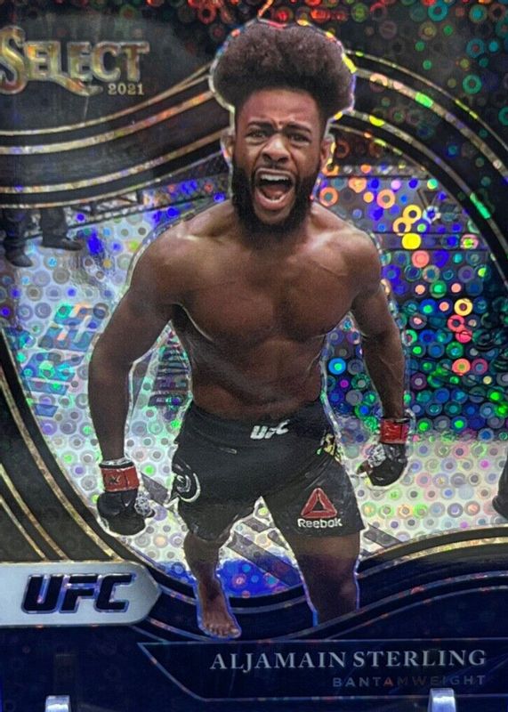 This card is 1 of 48 Aljamain Sterling's card variations in the 2021 Select UFC set being tracked by Sports Card Investor, including Concourse Disco, Concourse Scope, Concourse Silver, Concourse Tri-Color, and Octagonside Disco.