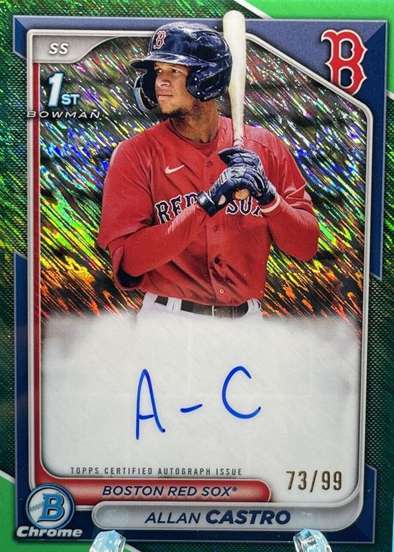 2024 Allan Castro 1st Bowman Chrome Auto Green Shimmer /99 Red Sox