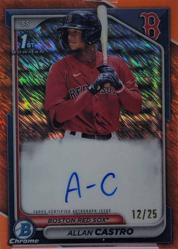 Auctions Ending Soon for Allan Castro 2024 Bowman #CPA-ACA Chrome Prospect Auto - Orange Shimmer Refractor /25 (1st) RAW